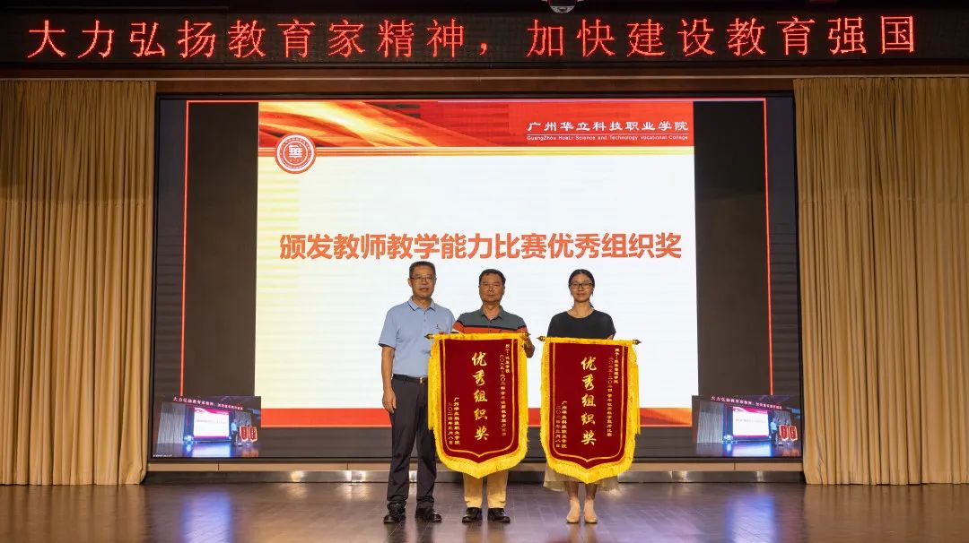 為深入學(xué)習(xí)貫徹黨的二十屆三中全會精神,大力弘揚(yáng)教育家精神,著力加強(qiáng)新時代教師隊(duì)伍建設(shè),9月9日下午,廣州華立科技職業(yè)學(xué)院舉行“大力弘揚(yáng)教育家精神,加快建設(shè)教育強(qiáng)國”教師節(jié)表彰大會和2024年師德建設(shè)主題教育月活動啟動儀式,兩校區(qū)采用視頻連線的方式同步進(jìn)行。學(xué)校黨委書記陳良聲、常務(wù)副校長馬俊,副校長陳顯強(qiáng)、高堯來、王洪艷,校長助理葉春桃、張劍鋒與獲獎教職工代表、新教職工代表、師生代表歡聚一堂,共同慶祝第40個教師節(jié),共同感受人民教師的榮光。表彰大會由副校長王洪艷主持。