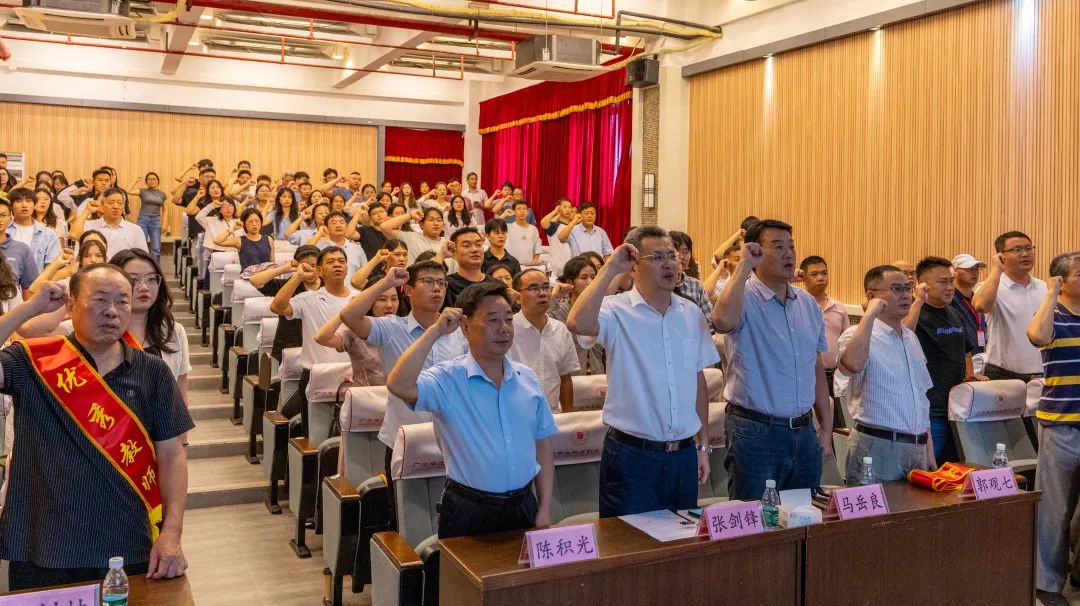 誓言鏗鏘,堅(jiān)定有力,回聲悠揚(yáng),銘感不忘。大會還舉行了教師宣誓儀式。一聲聲鏗鏘有力的誓言,表達(dá)了教師們投身教育事業(yè)的決心與信心,勾勒出華立人躬耕教壇、矢志奮斗的精彩畫像。