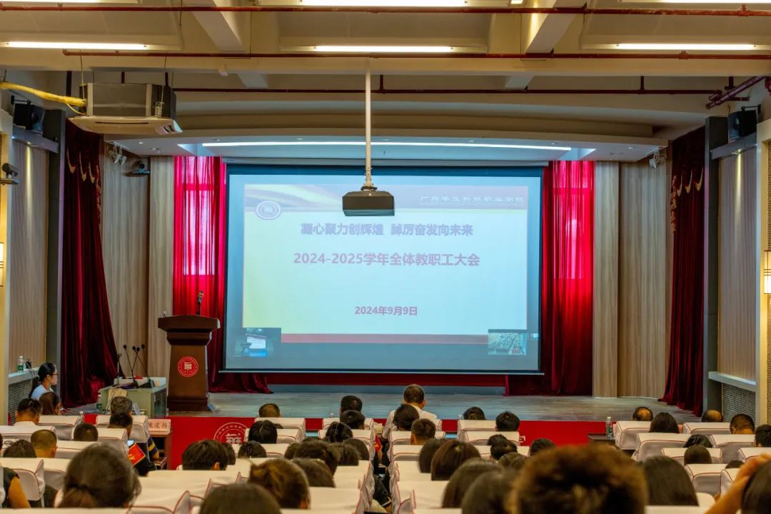 9月9日下午,廣州華立科技職業(yè)學(xué)院在廣州校區(qū)圖書館8樓報告廳召開2024-2025學(xué)年全體教職工大會,云浮校區(qū)以視頻連線同步進行。全體校領(lǐng)導(dǎo),中層干部和兩校區(qū)教職工參加,大會由常務(wù)副校長馬俊主持。
