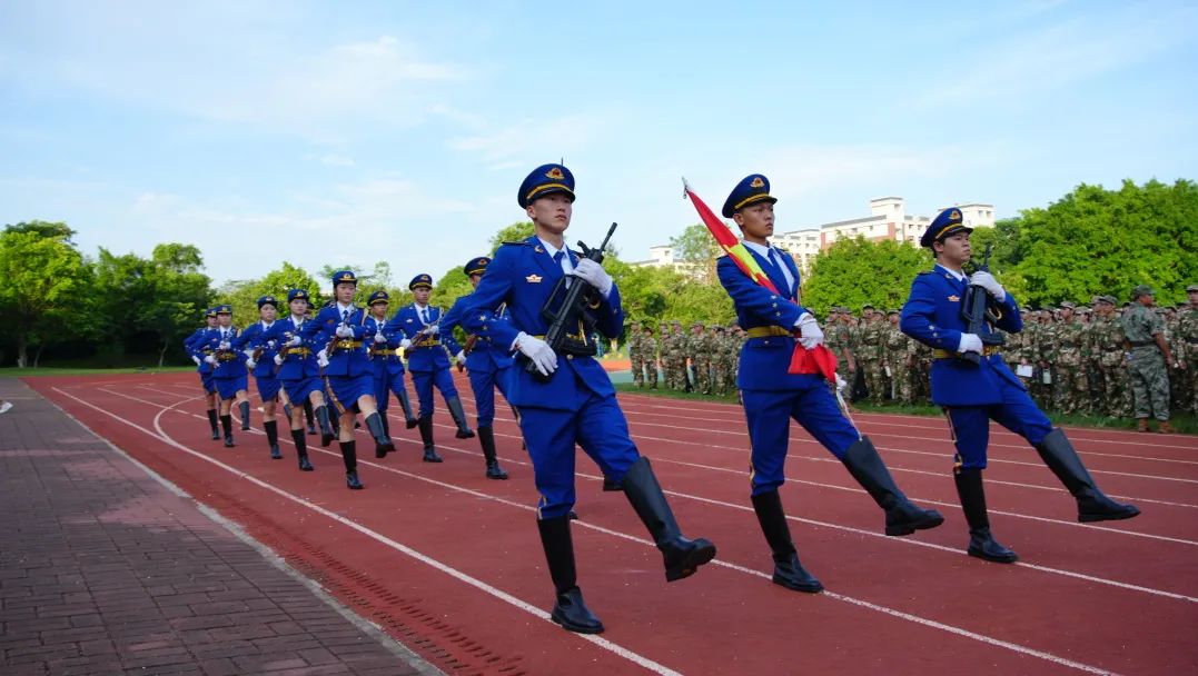 黨委書記陳良聲同志向承訓(xùn)部隊(duì)授軍訓(xùn)團(tuán)團(tuán)旗。隨著鮮艷的軍訓(xùn)團(tuán)旗緩緩升起并交接到軍訓(xùn)團(tuán)領(lǐng)導(dǎo)手中,全場響起了雷鳴般的掌聲和歡呼聲。這面旗幟不僅代表著學(xué)校對軍訓(xùn)工作的重視和支持,更寄托著學(xué)校對全體新生的殷切期望和美好祝愿。