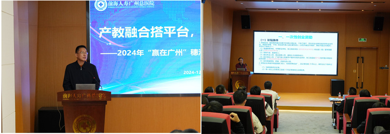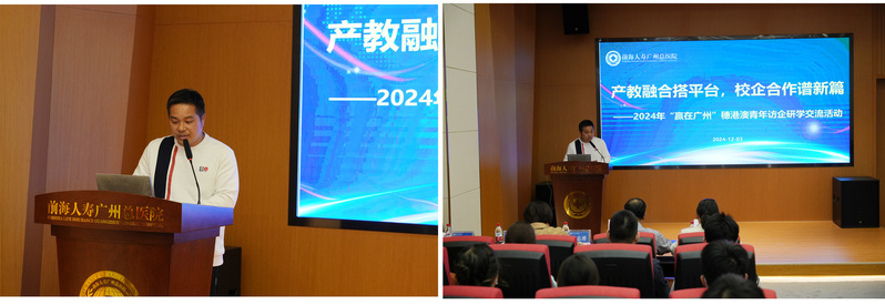 2024年12月3日下午,我校聯(lián)合前海人壽廣州總醫(yī)院和廣州市增城區(qū)人力資源和社會(huì)保障局在前海人壽廣州總醫(yī)院門診一樓階梯會(huì)議室共同舉行了主題為“產(chǎn)教融合搭平臺(tái),校企合作譜新篇——2024年“贏在廣州”穗港澳青年訪企研學(xué)交流活動(dòng)”。