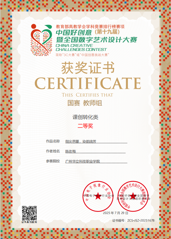國(guó)賽(教師組)課創(chuàng)轉(zhuǎn)化類 二等獎(jiǎng)證書