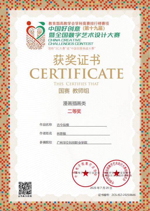 國(guó)賽(教師組)漫畫插畫類 二等獎(jiǎng)證書