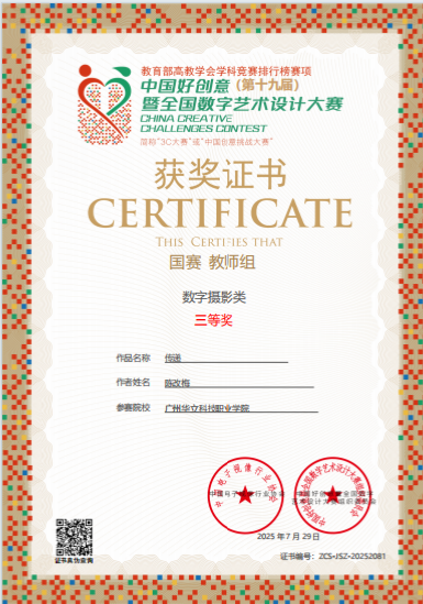 國(guó)賽(教師組)數(shù)字?jǐn)z影類 三等獎(jiǎng)證書