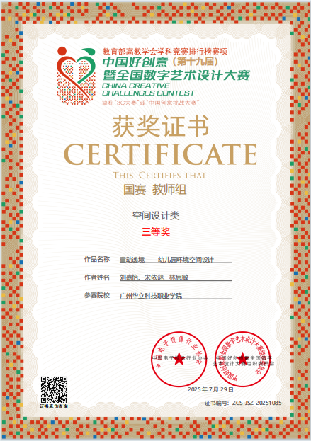 國(guó)賽(教師組)空間設(shè)計(jì)類 三等獎(jiǎng)證書