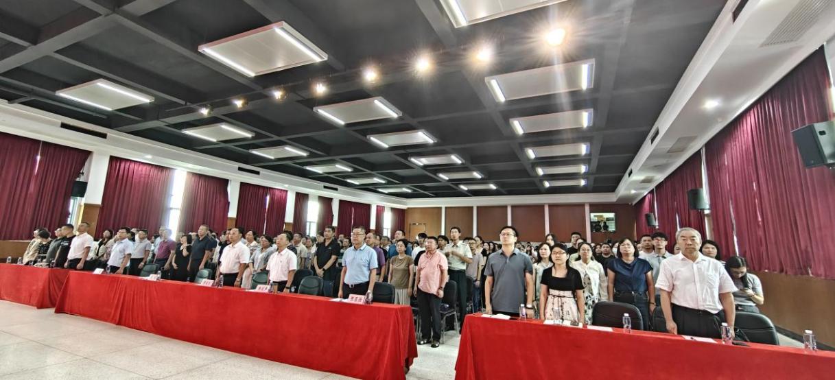 大會在莊嚴(yán)的國歌聲中拉開帷幕,全體教職工肅立齊唱國歌,激發(fā)出團(tuán)結(jié)奮進(jìn)的強(qiáng)大力量。