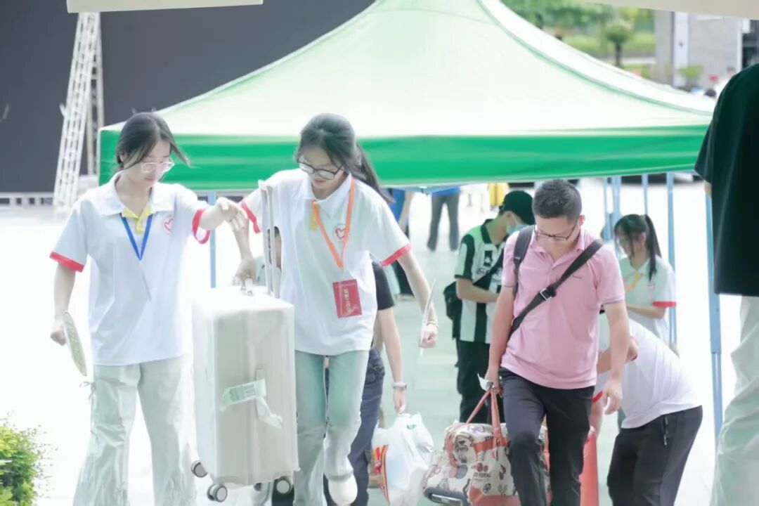 那一聲清脆的“你好”,是最溫暖的開始!迎新志愿者身著統(tǒng)一整潔的服裝,在人群中穿梭著,他們熱情引導(dǎo)新生報(bào)到、耐心陪伴辦理手續(xù)、主動幫忙搬運(yùn)行李、帶路前往宿舍。一句句"我來幫您""請跟我來"的暖心話語,一個(gè)個(gè)真誠微笑如同夏日里的陣陣清風(fēng),悄然消解了初入校園的拘謹(jǐn)與忐忑,讓這段啟程之路浸潤著溫暖與希望。