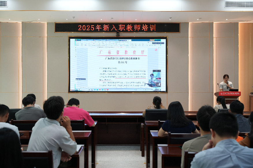 金秋時節(jié),我校迎來了一批懷揣教育理想的新教師。為幫助他們盡快適應(yīng)崗位、提升教學(xué)與科研能力,8月28日,學(xué)校2025年新入職教師培訓(xùn)在廣州校區(qū)圖書館104會議室舉行,培訓(xùn)內(nèi)容涵蓋14個專題模塊,云浮校區(qū)通過視頻連線設(shè)分會場同步舉行培訓(xùn)。學(xué)校黨委書記陳良聲,黨委副書記、副校長高堯來,紀(jì)委書記、副校長王洪艷等校領(lǐng)導(dǎo)出席,各二級學(xué)院行政人事主任及全體新教師參加。培訓(xùn)會議由校黨委教師工作部部長、人事處處長、教師發(fā)展中心主任鐘文浩主持。