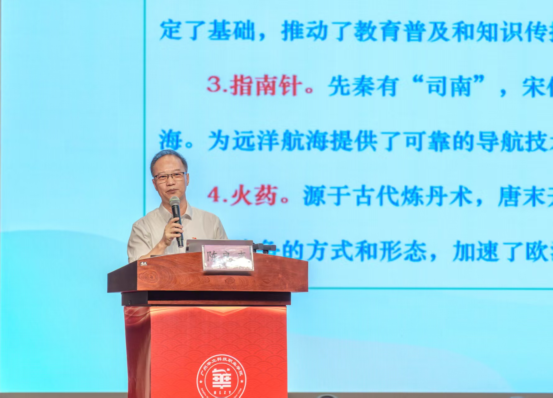 隨后,陳良聲通過一系列詳實的數(shù)據(jù)和生動的案例,全景式展現(xiàn)了我國近年來在科技創(chuàng)新方面所取得了舉世矚目的突破。從“嫦娥”探月、“天問”探火到“北斗”導(dǎo)航,深邃太空一次次留下中國印記;從“奮斗者”號萬米深潛到中國芯片快速崛起,重大工程實現(xiàn)歷史性跨越;從量子計算研究到人工智能、數(shù)字經(jīng)濟蓬勃發(fā)展,前沿領(lǐng)域開始進入并跑、領(lǐng)跑階段;5G技術(shù)、高鐵技術(shù)構(gòu)建起亮麗的“國家名片”;東風(fēng)-61亮相今年九三閱兵、陸海空基組成的“三位一體”戰(zhàn)略核打擊力首次完整公開展示。“我國科技實力正在從量的積累邁向質(zhì)的飛躍,從點的突破邁向系統(tǒng)能力提升,科技創(chuàng)新取得歷史性成就、發(fā)生歷史性變革,中國的科技創(chuàng)新不斷突破了人們的想象。”陳良聲充滿自信的敘述,激發(fā)了在場師生的強烈共鳴與無比自豪。