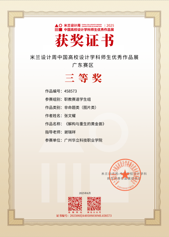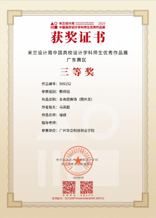 三、2025年5月,“米蘭設(shè)計(jì)周·中國(guó)高校設(shè)計(jì)學(xué)科師生優(yōu)秀作品展”由中國(guó)教育國(guó)際交流協(xié)會(huì)、中國(guó)高等教育學(xué)會(huì)聯(lián)合主辦,是教育部《全國(guó)普通高校學(xué)科競(jìng)賽排行榜》重點(diǎn)賽事之一。賽事吸引了全國(guó)近千所高校參與,賽事旨在搭建國(guó)際化交流平臺(tái),推動(dòng)設(shè)計(jì)學(xué)科教學(xué)與實(shí)踐的深度融合,助力中國(guó)設(shè)計(jì)走向世界。在第九屆“米蘭設(shè)計(jì)周·中國(guó)高校設(shè)計(jì)學(xué)科師生優(yōu)秀作品展”藝術(shù)與傳媒學(xué)院師生榮獲“二等獎(jiǎng)”1項(xiàng)、“三等獎(jiǎng)”7項(xiàng),充分展現(xiàn)了藝傳學(xué)院在設(shè)計(jì)教育領(lǐng)域“以賽促教、以文化人”的育人成果與師生團(tuán)隊(duì)的卓越風(fēng)采。