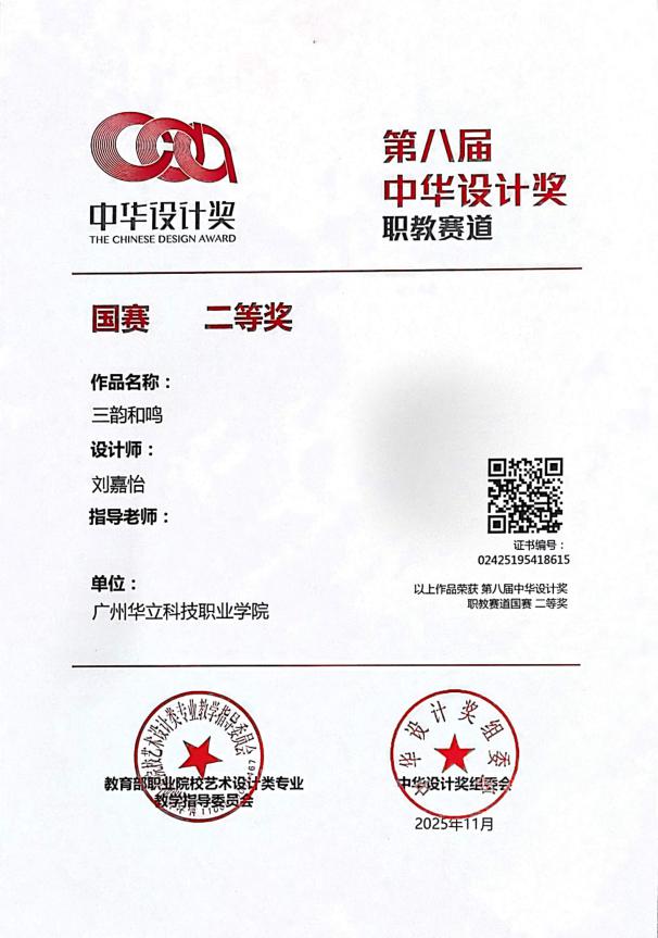 十、2025年11月,中華設(shè)計(jì)獎(jiǎng)自2017年創(chuàng)立以來(lái),累計(jì)吸引了全球上千所高校、機(jī)構(gòu)及設(shè)計(jì)團(tuán)隊(duì)參與,始終致力于推動(dòng)中國(guó)原創(chuàng)設(shè)計(jì)力量的成長(zhǎng)與交流,已成為國(guó)內(nèi)具有重要影響力的設(shè)計(jì)賽事平臺(tái)。近日,備受矚目的第八屆中華設(shè)計(jì)獎(jiǎng)頒獎(jiǎng)儀式在寧波隆重舉行。本屆大賽以“智創(chuàng)未來(lái),設(shè)計(jì)共生”為核心主題,聚焦“文化創(chuàng)新、鄉(xiāng)村振興、智能科技、數(shù)字藝術(shù)與交互”四大前沿領(lǐng)域,旨在通過(guò)智能化創(chuàng)新驅(qū)動(dòng),深度探索設(shè)計(jì)與智能科技的融合之道,尋求設(shè)計(jì)賦能生活、社會(huì)與科技和諧共生的嶄新路徑,為構(gòu)建創(chuàng)新、可持續(xù)的未來(lái)貢獻(xiàn)了豐富的設(shè)計(jì)智慧與解決方案。藝術(shù)與傳媒學(xué)院師生共榮獲“職教賽道”概念組國(guó)賽“一等獎(jiǎng)”2項(xiàng)、“二等獎(jiǎng)”2項(xiàng)、“三等獎(jiǎng)”2項(xiàng)。