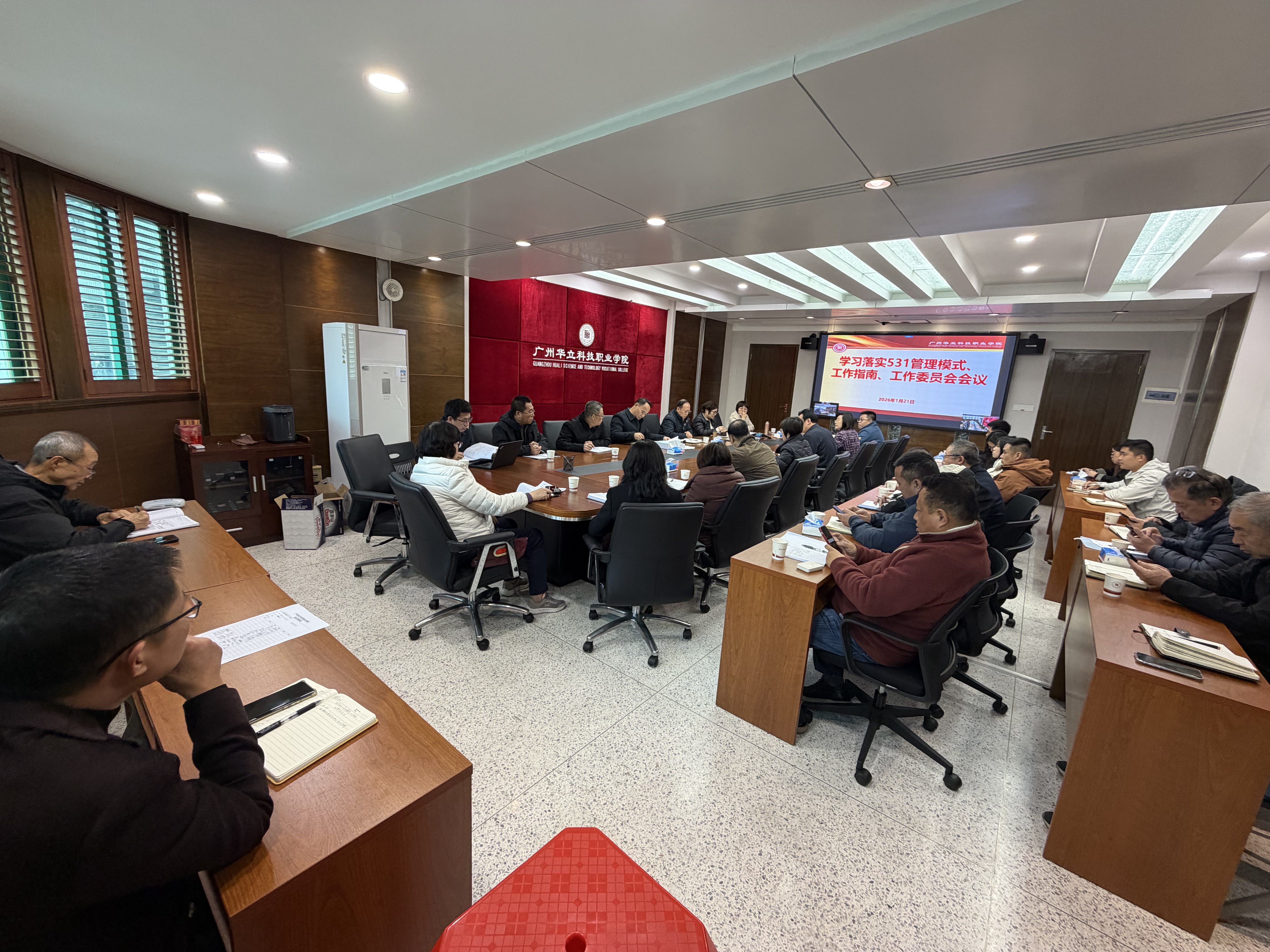 為錨定學(xué)校長遠(yuǎn)發(fā)展目標(biāo),夯實(shí)規(guī)范化管理根基,2026年1月21日,廣州華立科技職業(yè)學(xué)院召開學(xué)習(xí)落實(shí)“531”工作計(jì)劃專題會(huì)議,全體校領(lǐng)導(dǎo)、職能部門負(fù)責(zé)人及二級學(xué)院院長齊聚行政樓305會(huì)議室,云浮校區(qū)同步視頻連線,共同學(xué)習(xí)“531”管理模式核心要義,部署相關(guān)工作推進(jìn)事宜。會(huì)議由廖俊杰校長主持。
