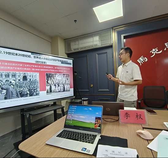 在教學(xué)展示環(huán)節(jié),新入職教師李權(quán)以“毛澤東思想的形成過(guò)程”為題、黃勇以“擔(dān)當(dāng)民族復(fù)興大任、成就時(shí)代新人”為題,分別圍繞《毛澤東思想和中國(guó)特色社會(huì)主義理論體系概論》和《思想道德與法治》兩門(mén)課程內(nèi)容開(kāi)展首課講課演示。他們按照課程教學(xué)標(biāo)準(zhǔn),立足學(xué)生認(rèn)知特點(diǎn),綜合運(yùn)用知識(shí)講解、案例分析、多媒體演示等教學(xué)手段,力求抽象理論的具象化和表達(dá)方式的通俗化,講課試煉的效果良好,既顯示出他們具備一定的專業(yè)教學(xué)素質(zhì),也展現(xiàn)出作為一名高校年輕教師積極向上的青春朝氣和個(gè)人氣質(zhì)。
