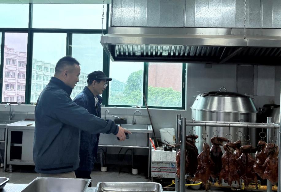活動(dòng)伊始,楊銘鐸教授在李春洪院長的陪同下,深入學(xué)校烹飪實(shí)訓(xùn)室開展實(shí)地考察。楊教授逐一查看中式烹調(diào)區(qū)、中西式面點(diǎn)實(shí)訓(xùn)區(qū)、營養(yǎng)配餐實(shí)驗(yàn)室等功能區(qū)域,詳細(xì)詢問實(shí)訓(xùn)設(shè)備配置、課程實(shí)訓(xùn)開展情況及學(xué)生實(shí)操培養(yǎng)模式。針對(duì)實(shí)訓(xùn)室的功能布局、設(shè)備利用效率和人才培養(yǎng)等方面,楊教授現(xiàn)場(chǎng)給出針對(duì)性指導(dǎo)建議,為實(shí)訓(xùn)室進(jìn)一步優(yōu)化升級(jí)、更好適配教學(xué)與行業(yè)人才需求提供了精準(zhǔn)方向。
