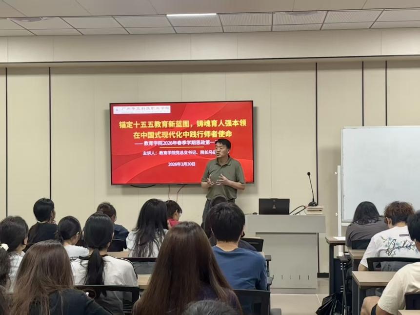 為深入學(xué)習(xí)貫徹黨的二十屆四中全會(huì)精神,落實(shí)立德樹(shù)人根本任務(wù),引導(dǎo)全院師生堅(jiān)定理想信念、踐行師者使命,3月30日晚,教育學(xué)院院長(zhǎng)、黨總支書(shū)記馬岳良以“錨定十五五教育新藍(lán)圖,鑄魂育人強(qiáng)本領(lǐng),在中國(guó)式現(xiàn)代化中踐行師者使命”為題,為2025級(jí)學(xué)子講授春季學(xué)期思政第一課,為未來(lái)的人民教師們點(diǎn)亮成長(zhǎng)燈塔。