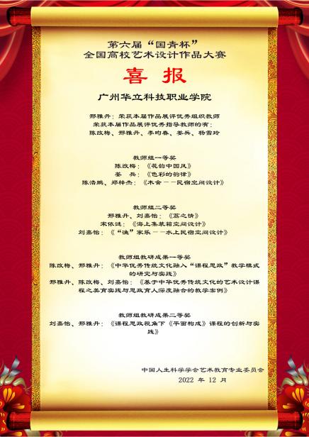 由中國(guó)人生科學(xué)學(xué)會(huì)藝術(shù)教育專業(yè)委員會(huì)組織的第六屆“國(guó)青杯”全國(guó)高校藝術(shù)設(shè)計(jì)作品大賽,我院通過向?qū)W校申報(bào)該賽項(xiàng),大力組織和推動(dòng)學(xué)院師生積極參與,歷經(jīng)一個(gè)月的作品收集、層層選拔和競(jìng)爭(zhēng),最終推選39件作品報(bào)送主辦方,參與評(píng)選。