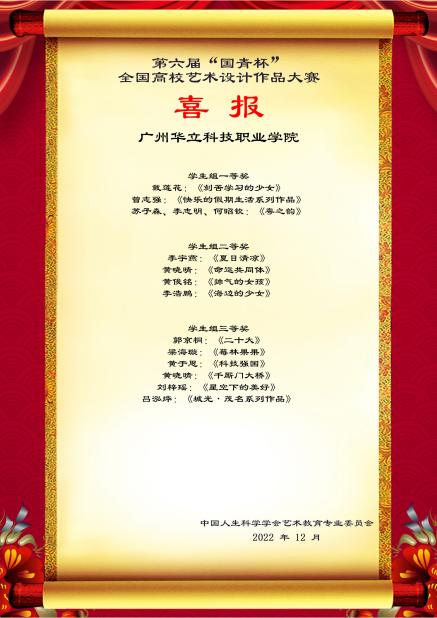 學(xué)生組作品獲獎(jiǎng):一等獎(jiǎng)3項(xiàng),二等獎(jiǎng)4項(xiàng),三等獎(jiǎng)6項(xiàng)。