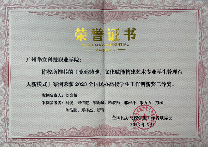 在本屆研討會中,我校學(xué)工團(tuán)隊(duì)研究成果豐碩,獲得多項(xiàng)榮譽(yù),其中我院學(xué)管負(fù)責(zé)人劉嘉怡老師主持的案例《黨建鑄魂,文化賦能構(gòu)建藝術(shù)專業(yè)學(xué)生管理育人新模式》榮獲2023全國民辦高校學(xué)生工作創(chuàng)新獎(jiǎng)二等獎(jiǎng)。