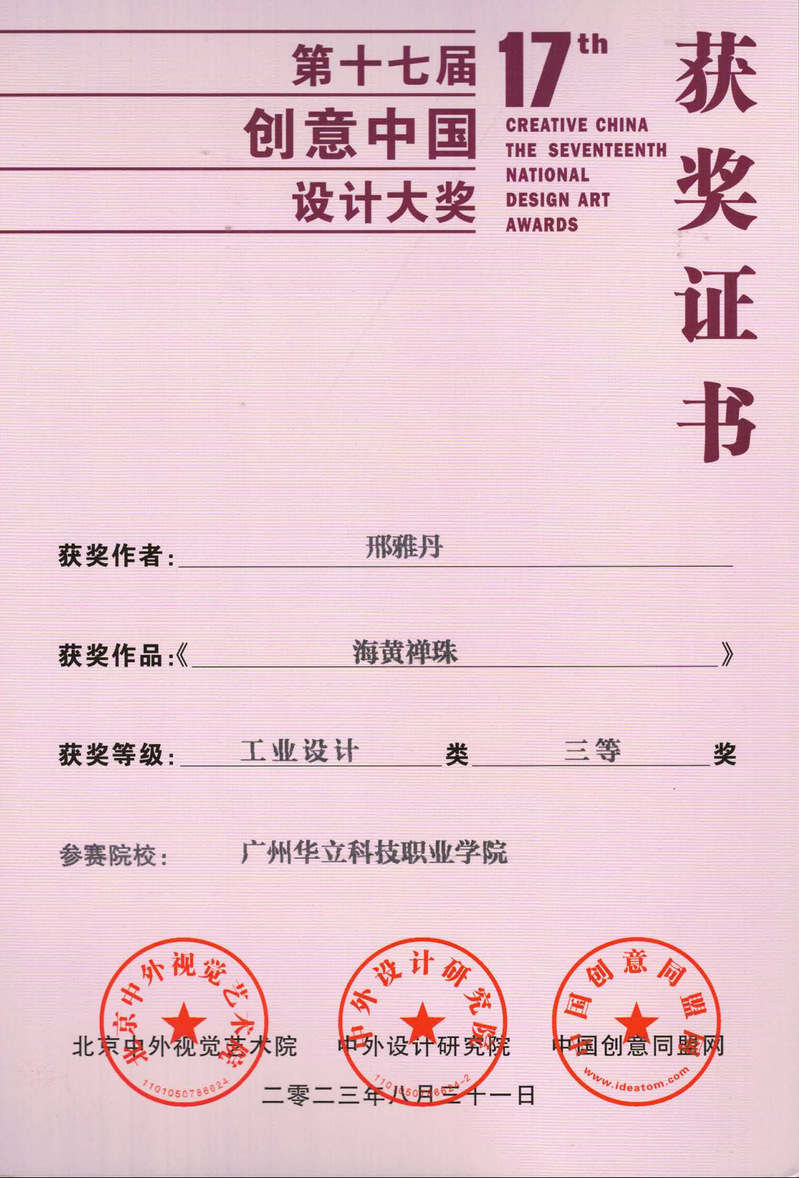 2023第十七屆“創(chuàng)意中國”設(shè)計(jì)大獎(jiǎng)是由北京中外視覺藝術(shù)院、中外設(shè)計(jì)研究院、中國創(chuàng)意同盟主辦的全國性專業(yè)設(shè)計(jì)獎(jiǎng)項(xiàng),旨在展現(xiàn)中國創(chuàng)意設(shè)計(jì)領(lǐng)域的最新成果,推進(jìn)我國設(shè)計(jì)人才的知名化、國際化進(jìn)程。
