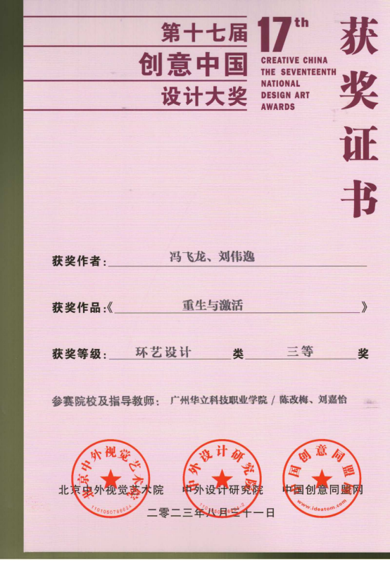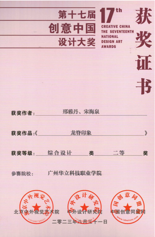 在校領(lǐng)導(dǎo)及教務(wù)處的大力支持和指導(dǎo)下,我院師生通過共同努力,取得了優(yōu)異的成績。共獲得2023年度中國設(shè)計(jì)教育成果獎(jiǎng)1項(xiàng);服飾設(shè)計(jì)類、工業(yè)設(shè)計(jì)類、綜合設(shè)計(jì)類、平面設(shè)計(jì)類、環(huán)藝設(shè)計(jì)類獲獎(jiǎng)教師組二等獎(jiǎng)1項(xiàng)、三等獎(jiǎng)6項(xiàng)、優(yōu)秀獎(jiǎng)2項(xiàng);學(xué)生組三等獎(jiǎng)6項(xiàng)、優(yōu)秀獎(jiǎng)10項(xiàng)。馬俊、陳改梅、邢雅丹、劉嘉怡、宋依謎、姜兵、馬英超、謝瑞祥等被評(píng)為優(yōu)秀指導(dǎo)教師。