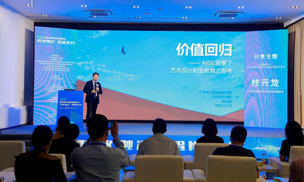 在論壇期間,還舉辦了多個(gè)分論壇和研討會(huì),涵蓋了數(shù)字創(chuàng)意產(chǎn)業(yè)的多個(gè)領(lǐng)域。廣東輕工職業(yè)技術(shù)學(xué)院藝術(shù)設(shè)計(jì)學(xué)院院長(zhǎng)桂元龍以《價(jià)值回歸——AIGC背景下藝術(shù)設(shè)計(jì)職業(yè)教育之思考》為題進(jìn)行了精彩的分享與研討。此次論壇為我校數(shù)字藝術(shù)設(shè)計(jì)教學(xué)的改革和發(fā)展提供了一個(gè)廣闊的視野和寶貴的契機(jī),通過(guò)深入探討和交流為數(shù)字產(chǎn)業(yè)的未來(lái)發(fā)展提供了新的思路和方向。我校將強(qiáng)化與行業(yè)企業(yè)的全方位、深層次、多形式合作,促進(jìn)專(zhuān)業(yè)優(yōu)化、人才培養(yǎng)與產(chǎn)業(yè)需求匹配,促進(jìn)科技資源創(chuàng)新性發(fā)展,期待著數(shù)字創(chuàng)意產(chǎn)業(yè)在未來(lái)的發(fā)展中能夠不斷取得新的突破和成就。