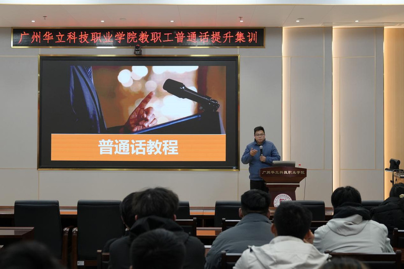 為提升教職工普通話應(yīng)用水平,強(qiáng)化教育教學(xué)語(yǔ)言規(guī)范,近日,廣州華立科技職業(yè)學(xué)院開(kāi)展教職工普通話提升集訓(xùn)。學(xué)校人事處處長(zhǎng)鐘文浩、藝術(shù)與傳媒學(xué)院院長(zhǎng)朱君到場(chǎng)參會(huì),全校各部門(mén)教職工積極參訓(xùn)。