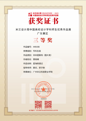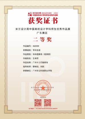 三、2025年5月,“米蘭設(shè)計周·中國高校設(shè)計學(xué)科師生優(yōu)秀作品展”由中國教育國際交流協(xié)會、中國高等教育學(xué)會聯(lián)合主辦,是教育部《全國普通高校學(xué)科競賽排行榜》重點(diǎn)賽事之一。賽事吸引了全國近千所高校參與,賽事旨在搭建國際化交流平臺,推動設(shè)計學(xué)科教學(xué)與實(shí)踐的深度融合,助力中國設(shè)計走向世界。在第九屆“米蘭設(shè)計周·中國高校設(shè)計學(xué)科師生優(yōu)秀作品展”藝術(shù)與傳媒學(xué)院師生榮獲“二等獎”1項(xiàng)、“三等獎”7項(xiàng),充分展現(xiàn)了藝傳學(xué)院在設(shè)計教育領(lǐng)域“以賽促教、以文化人”的育人成果與師生團(tuán)隊(duì)的卓越風(fēng)采。