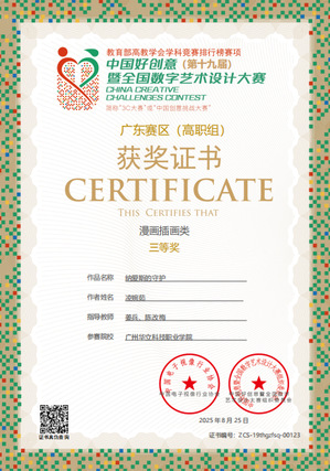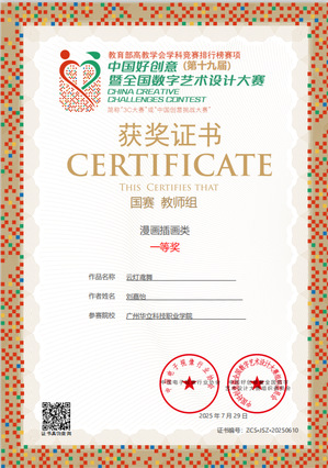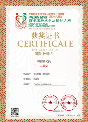七、2025年7月,中國好創(chuàng)意暨全國數(shù)字藝術(shù)設(shè)計大賽,簡稱“中國創(chuàng)意挑戰(zhàn)大賽”,是教育部中國高等教育學(xué)會《全國普通高校學(xué)科競賽分析報告》收錄的權(quán)威賽事。作為國內(nèi)首個以數(shù)字藝術(shù)為核心、將賽事提升至哲學(xué)高度,并提供投稿免費(fèi)存證服務(wù)的專業(yè)競賽,吸引眾多高校參與,影響力廣泛,已成為高校藝術(shù)創(chuàng)意領(lǐng)域的重要風(fēng)向標(biāo)。第十九屆中國好創(chuàng)意暨全國數(shù)字藝術(shù)設(shè)計大賽藝術(shù)與傳媒學(xué)院教師斬獲國賽“一等獎”1項(xiàng)、“二等獎”3項(xiàng)、“三等獎”4項(xiàng)的優(yōu)異成績。充分彰顯我校教師在數(shù)字藝術(shù)創(chuàng)作、技術(shù)應(yīng)用與教學(xué)改革中的綜合實(shí)力。