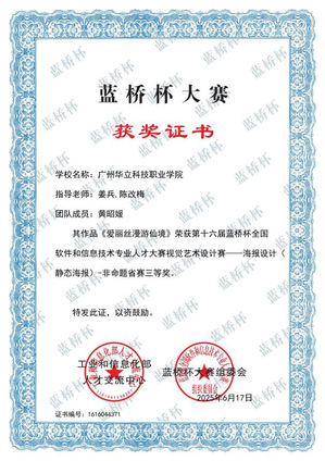 國賽數(shù)字?jǐn)z影類“三等獎” 國賽漫畫插畫類“三等獎”