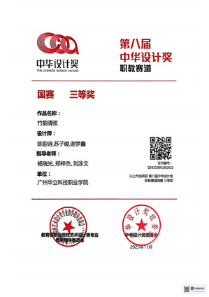 十、2025年11月,中華設(shè)計獎自2017年創(chuàng)立以來,累計吸引了全球上千所高校、機(jī)構(gòu)及設(shè)計團(tuán)隊(duì)參與,始終致力于推動中國原創(chuàng)設(shè)計力量的成長與交流,已成為國內(nèi)具有重要影響力的設(shè)計賽事平臺。近日,備受矚目的第八屆中華設(shè)計獎頒獎儀式在寧波隆重舉行。本屆大賽以“智創(chuàng)未來,設(shè)計共生”為核心主題,聚焦“文化創(chuàng)新、鄉(xiāng)村振興、智能科技、數(shù)字藝術(shù)與交互”四大前沿領(lǐng)域,旨在通過智能化創(chuàng)新驅(qū)動,深度探索設(shè)計與智能科技的融合之道,尋求設(shè)計賦能生活、社會與科技和諧共生的嶄新路徑,為構(gòu)建創(chuàng)新、可持續(xù)的未來貢獻(xiàn)了豐富的設(shè)計智慧與解決方案。藝術(shù)與傳媒學(xué)院師生共榮獲“職教賽道”概念組國賽“一等獎”2項(xiàng)、“二等獎”2項(xiàng)、“三等獎”2項(xiàng)。
