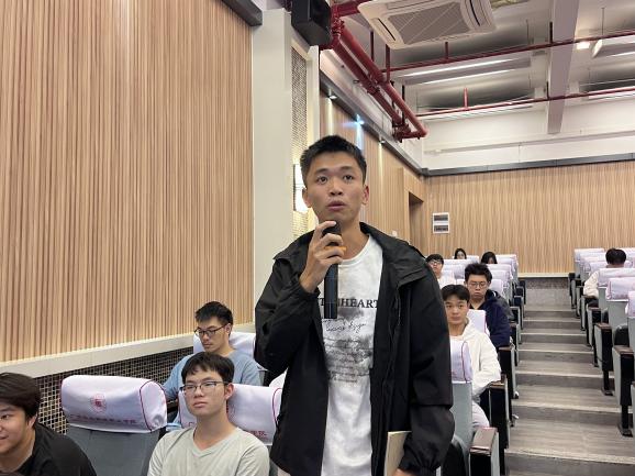 隨后,盧賽虎部長以提問引發(fā)同學們思考:“大家認為‘礦’是什么?生活中見過哪些礦?”問題拋出后,現(xiàn)場學子踴躍舉手發(fā)言?!拔乙娺^鐵礦,是黑色的石塊!”“煤炭算不算礦?”面對同學們的回答,盧部長逐一點評,從專業(yè)角度給出“礦”的定義,并列舉了金屬礦、非金屬礦、能源礦等常見礦產(chǎn)類型,結(jié)合廣東本地的礦產(chǎn)資源分布實例,讓同學們對“礦”有了系統(tǒng)認知?;又校瑢W們積極提問,從行業(yè)就業(yè)前景到專業(yè)學習難點,盧部長耐心解答,現(xiàn)場氛圍熱烈,掌聲不斷。