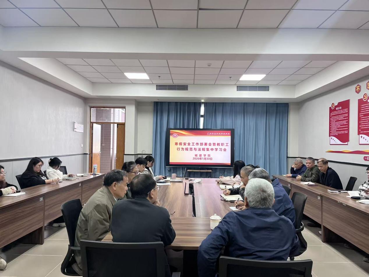 為強化師德師風(fēng)建設(shè),規(guī)范從教行為,筑牢假期安全防線,1月30日上午,城建學(xué)院組織全體教職工召開專題會議,集中學(xué)習(xí)相關(guān)規(guī)章制度,并部署寒假期間安全及紀(jì)律工作。