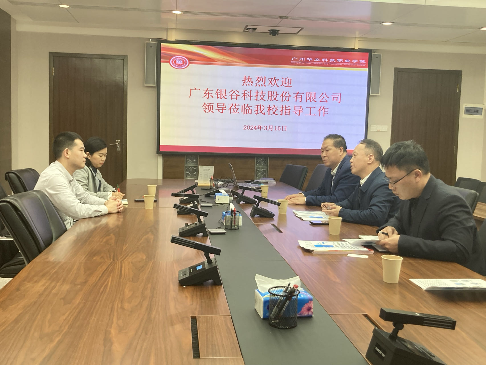 3月16日下午,學(xué)校邀請(qǐng)“廣東銀谷科技股份有限公司”領(lǐng)導(dǎo)來(lái)校洽談校企合作。學(xué)校黨委書記陳良生、產(chǎn)教融合辦科長(zhǎng)韋建林、電力與智能制造學(xué)院院長(zhǎng)褚玉峰、就業(yè)主任楊軍等人參加了會(huì)議。