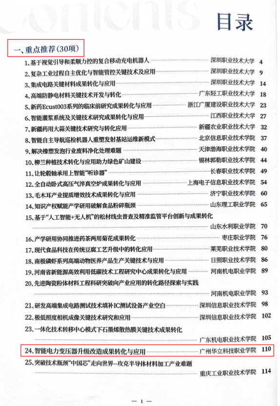 論壇發(fā)布了100項(xiàng)職業(yè)教育產(chǎn)教融合科技成果轉(zhuǎn)化案例。我校電力與智能制造學(xué)院教師黨支部的“智能電力變壓器升級改造成果轉(zhuǎn)化”案例,入選中國職業(yè)技術(shù)教育學(xué)會2024《科技成果轉(zhuǎn)化100項(xiàng)實(shí)踐案例》,列在“重點(diǎn)推薦”的30個案例之中,中國職業(yè)技術(shù)教育學(xué)會會長、教育部原副部長魯昕為我校頒發(fā)證書。