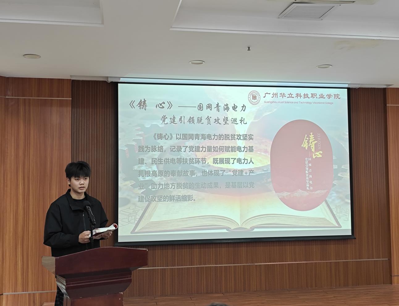 為學(xué)習(xí)貫徹黨的二十屆四中全會(huì)精神,做好“儒雅電力人”文化育人黨建品牌建設(shè),持續(xù)推進(jìn)“三十本書·閱讀工程”,厚植紅色文化底蘊(yùn),凝聚電力學(xué)子的紅色使命擔(dān)當(dāng)。12月4日下午,電力與智能制造學(xué)院(云浮校區(qū))舉行“擎紅色旗幟 創(chuàng)智能電力”主題讀書分享會(huì)。參加會(huì)議的領(lǐng)導(dǎo)與嘉賓有:學(xué)校圖書館副館長(zhǎng)劉杰、基礎(chǔ)業(yè)務(wù)部副主任魏秋文、趙淑珍、黃平娟,學(xué)院副院長(zhǎng)馬洪德、學(xué)管主任肖文相、團(tuán)委副書記吳培龍及參加分享的學(xué)生與學(xué)生代表。