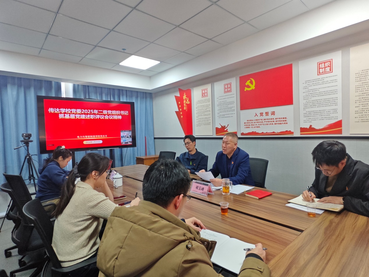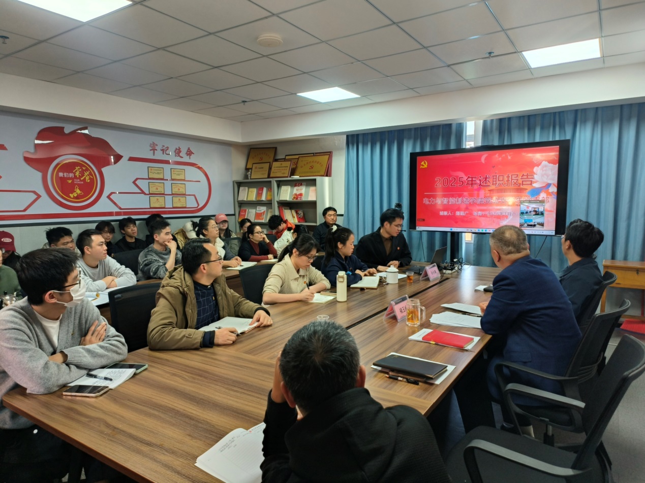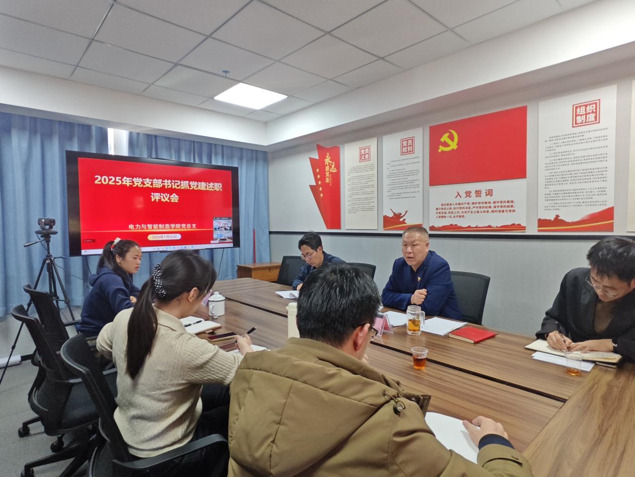 1月26日,電力與智能制造學院黨總支召開2025年度黨支部書記抓黨建述職大會,會議由學院黨總支書記褚玉峰主持,學院全體黨員參加了本次會議。
