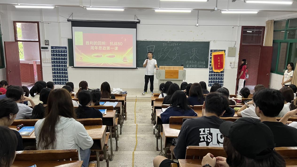 本次《勝利的回響:抗戰(zhàn)80周年思政第一課》是健康學(xué)院新學(xué)期思政教育活動的重要構(gòu)成部分,旨在引導(dǎo)廣大青年學(xué)生銘記歷史、緬懷先烈、珍視和平、開創(chuàng)未來,將愛國主義情懷轉(zhuǎn)化為青春奮進實踐。