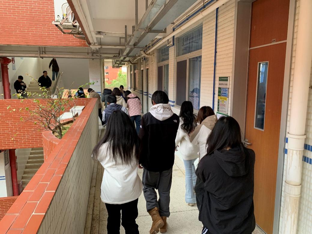 演練開始,健康學(xué)院實驗員發(fā)出火災(zāi)警報,并迅速組織演練師生從實訓(xùn)室進行疏散逃生演練,按照疏散路線在指定時間內(nèi)快速、安全、有序從最近的疏散通道撤離到安全地帶。