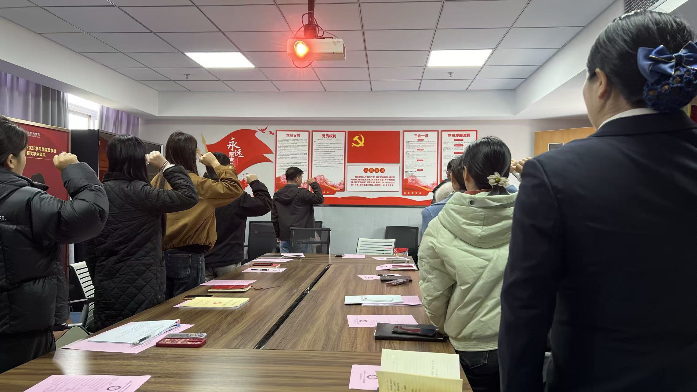 按照會(huì)議流程,大會(huì)以無(wú)記名投票方式進(jìn)行票決。在嚴(yán)格的監(jiān)票、計(jì)票環(huán)節(jié)后,大會(huì)宣讀決議:同意曾藝瑤同志發(fā)展對(duì)象轉(zhuǎn)為預(yù)備黨員。隨后,全體黨員起立奏唱《國(guó)際歌》,凝聚黨性共識(shí)。