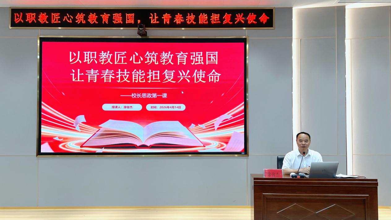 4月14日下午,廣州華立科技職業(yè)學(xué)院2026年春季學(xué)期校長“思政第一課”在西區(qū)圖書館報告廳開講。校長廖俊杰以“以職教匠心筑教育強國,讓青春技能擔(dān)復(fù)興使命”為題,為華立學(xué)子帶來了一場啟迪思想、指引方向的思政大課。課程深入學(xué)習(xí)貫徹習(xí)近平總書記關(guān)于職業(yè)教育的重要論述和2026年全國兩會精神,引導(dǎo)同學(xué)們以理想為帆、以技能為翼,在推進中國式現(xiàn)代化的壯闊征程中勇?lián)姑?、奮楫爭先。
