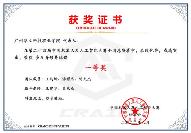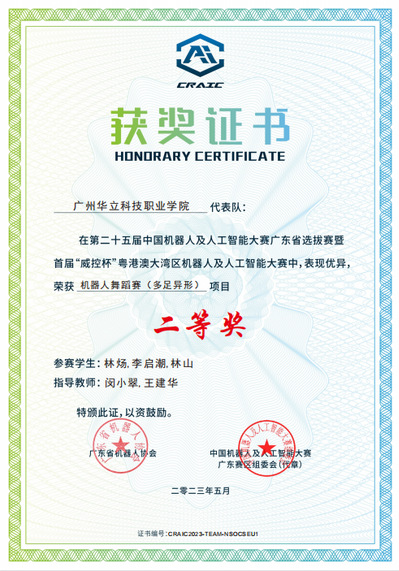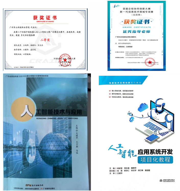 學生團隊積極參與各類專業(yè)技能大賽與創(chuàng)新賽,充分展示我院學生實踐能力與創(chuàng)新精神。其中,在中國機器人及人工智能大賽獲從24到27屆多次取得全國一等獎。教師團隊積極參與人工智能相關(guān)書籍編寫與科研項目,其中《人工智能技術(shù)與應用》獲廣東省十四五規(guī)劃教材、省宣傳部重點出版物稱號,依托人工智能賦能獲廣東省教學成果獎二等獎,彰顯專業(yè)教科研實力。