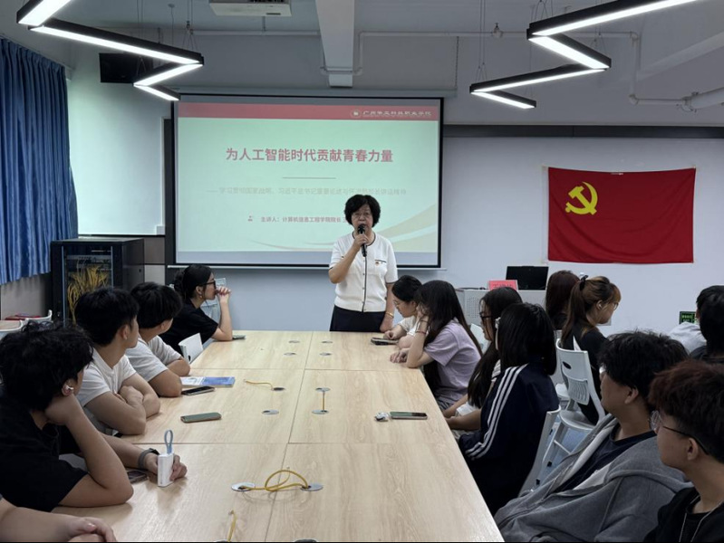 課上,王建華院長深入解讀人工智能作為“國之大者”的戰(zhàn)略意義,強調(diào)其是引領(lǐng)科技革命、催生新質(zhì)生產(chǎn)力的核心力量。她寄語青年學子牢記 “立大志、明大德、成大才、擔大任” 的囑托,以“挺膺擔當”踐行時代責任,爭做自主創(chuàng)新“破壁者”、賦能百業(yè)“實干家”、科技向善“守護人”、全球競合“先鋒員”,同時筑牢專業(yè)根基、拓展交叉視野、錘煉過硬本領(lǐng),構(gòu)建“四位一體”能力體系。