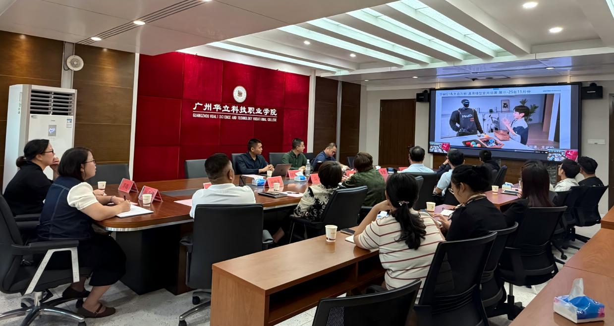 為深化產(chǎn)教融合、精準(zhǔn)對(duì)接人形機(jī)器人產(chǎn)業(yè)人才需求,2026年 3月 31日,廣州華立科技職業(yè)學(xué)院與宇樹科技股份有限公司校企合作交流會(huì)在行政樓305會(huì)議室隆重舉行。學(xué)校校長廖俊杰、常務(wù)副校長馬俊、教務(wù)處處長孫麗英、實(shí)訓(xùn)中心主任張磊、計(jì)算機(jī)信息工程學(xué)院黨總支書記宋海泉、副院長閔小翠、副院長蘇越、電力與智能制造學(xué)院院長梁仁建、宇樹科技股份有限公司華南區(qū)銷售總監(jiān)林志龍、廣州友鉻人形機(jī)器人科技有限公司總經(jīng)理韓佳志等出席了此次會(huì)議,共商校企協(xié)同育人新路徑。