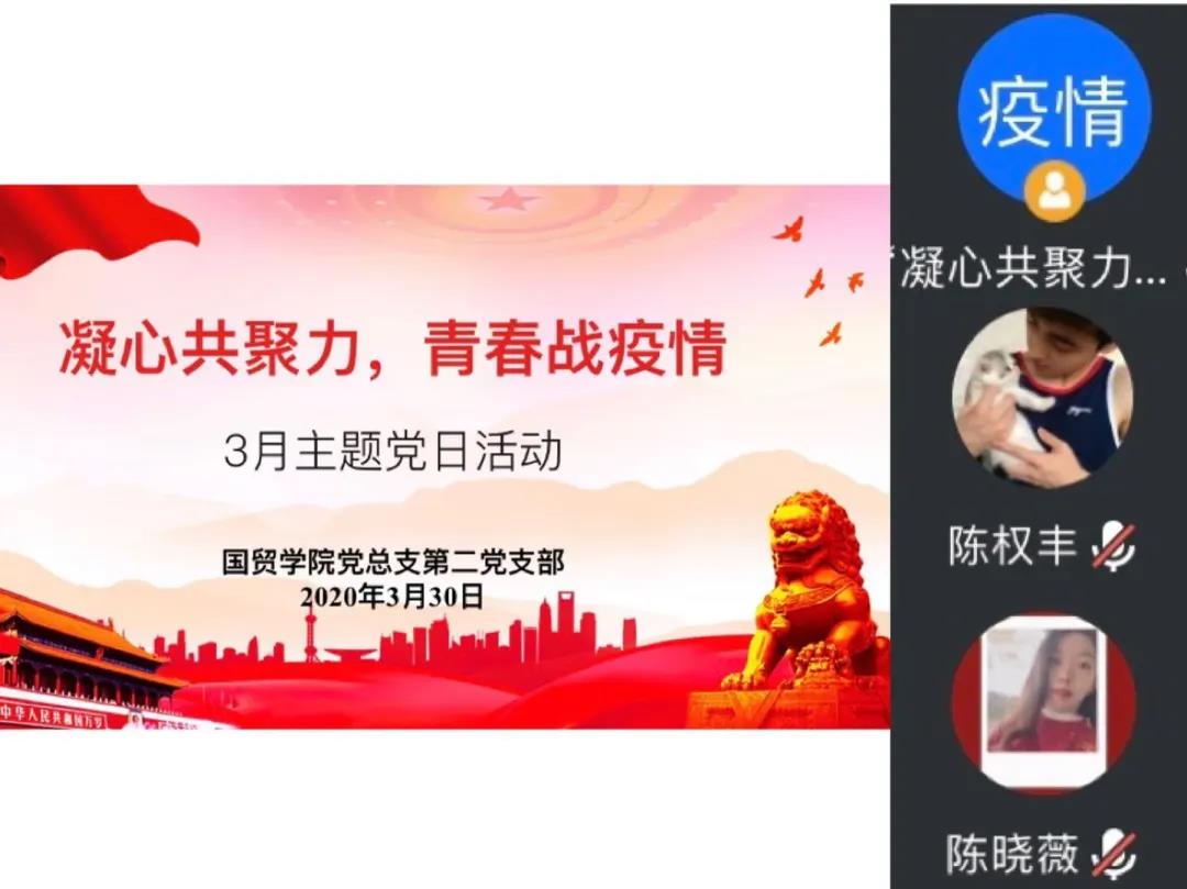 2020年3月30日星期一晚上七點(diǎn),國(guó)貿(mào)學(xué)院黨總支第二黨支部在騰訊會(huì)議平臺(tái)開(kāi)展了“凝心共聚力,青春戰(zhàn)疫情”組織生活會(huì),參加本次會(huì)議的有國(guó)貿(mào)學(xué)院黨總支第二黨支部書(shū)記劉偉鑫老師、國(guó)貿(mào)學(xué)院黨總支第二黨支部組織宣傳委員陳權(quán)豐老師、國(guó)貿(mào)學(xué)院黨總支黨建小組指導(dǎo)老師陳曉薇老師以及國(guó)貿(mào)學(xué)院全體學(xué)生黨員。