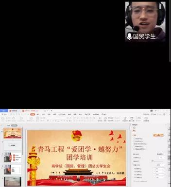 管理學(xué)院、國(guó)貿(mào)學(xué)院青馬工程“愛團(tuán)學(xué)·越努力”團(tuán)學(xué)培訓(xùn)于2020年4月6日通過(guò)騰訊會(huì)議軟件線上進(jìn)行授課。