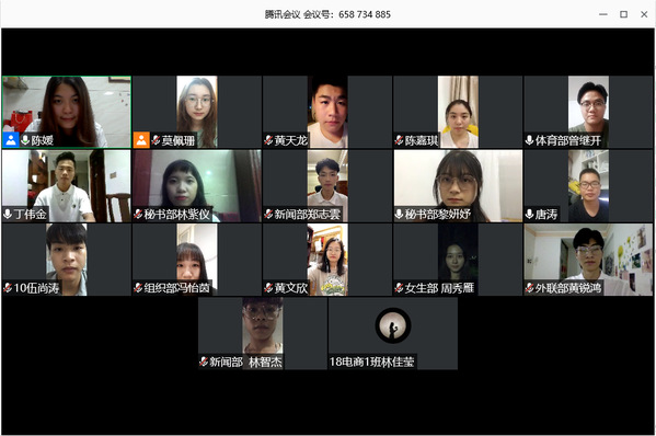 在團(tuán)總支陳媛書(shū)記宣讀過(guò)演講規(guī)則后,各競(jìng)選人有序進(jìn)行著本次演講,依次進(jìn)入騰訊會(huì)議進(jìn)行面試。