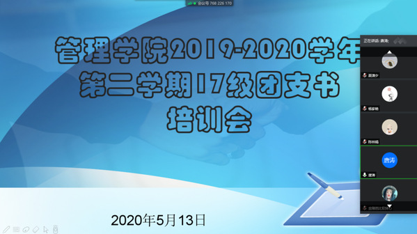我院于2020年5月13日晚上19點(diǎn)在騰訊會議開展了管理學(xué)院2019-2020學(xué)年第二學(xué)期17級團(tuán)支書培訓(xùn)會。管理學(xué)院學(xué)生管理唐濤副主任、管理學(xué)院團(tuán)總支陳媛書記、學(xué)生會主席黃天龍同學(xué)、管理學(xué)院團(tuán)總支組織部負(fù)責(zé)人以及17級各班團(tuán)支書出席了本次培訓(xùn)會議。