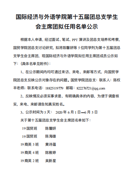 本次主席團(tuán)競(jìng)選取得圓滿成功,為國貿(mào)學(xué)院團(tuán)總支學(xué)生會(huì)注入了新的血液,展示了新一屆主席團(tuán)的精神風(fēng)貌,相信在領(lǐng)導(dǎo)老師的正確帶領(lǐng)下,會(huì)讓國貿(mào)團(tuán)總支學(xué)生會(huì)更上一層樓、使國貿(mào)的明天更加輝煌。