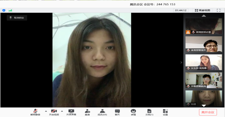 競(jìng)選者按照順序依次打開(kāi)攝像頭進(jìn)行演講,他們分別就各自的基本信息、競(jìng)選職位、競(jìng)選原因及未來(lái)一年的工作規(guī)劃進(jìn)行了簡(jiǎn)短而精彩的演講。在短短幾分鐘內(nèi)給老師和主席團(tuán)的成員留下了深刻的印象。