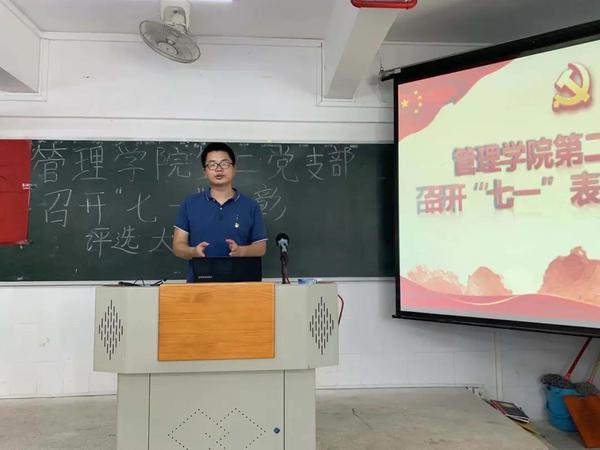 管理學院黨總支于2020年6月20日、24日在西3教學樓311教室分別召開第二黨支部、第一黨支部會議,會議主題為2020年“七一”表彰管理學院黨總支評選會議,出席本次會議的有管理學院黨總支書記王洪艷同志、黨總支副書記兼第二黨支部書記唐濤同志、第一黨支部書記王映麗同志、全體教師黨員以及學生黨員、預備黨員,會議由唐濤同志主持。